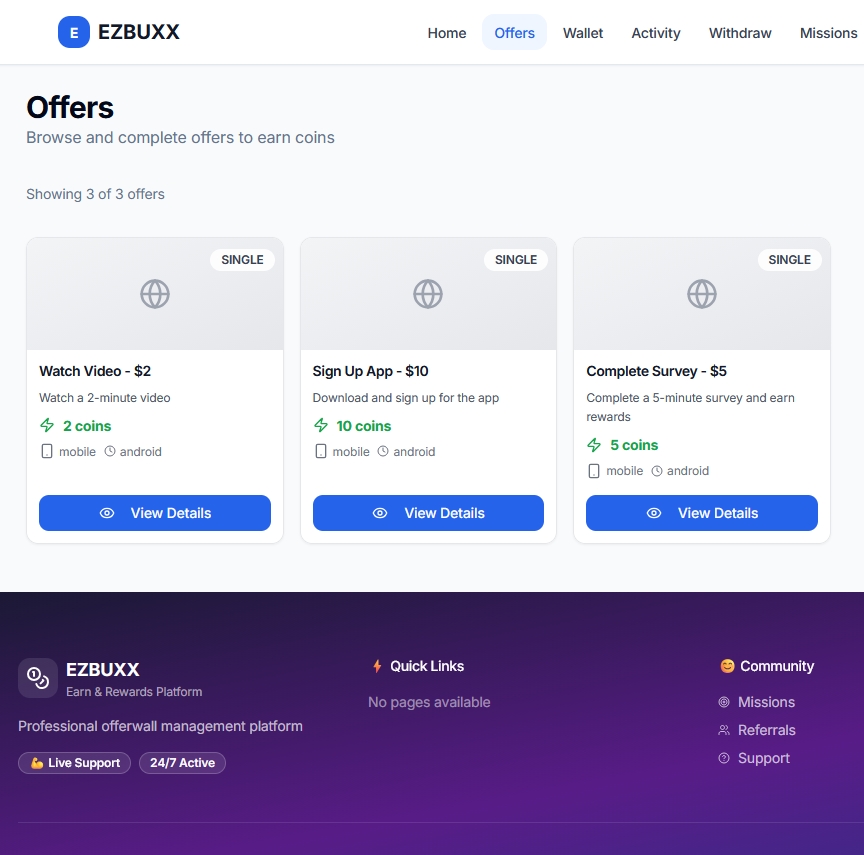 EasyBuxx GPT is a Get-Paid-To (GPT) reward platform where publishers can display offers, surveys, and tasks, and end users earn real money by completing them.